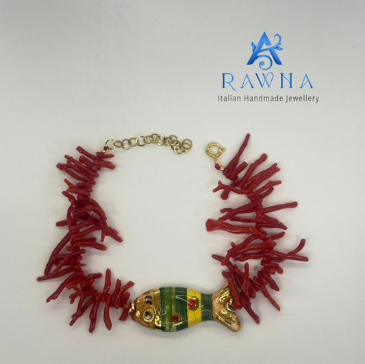 Bracciale Artigianale con Borsa in Ceramica di Caltagirone, Pasta di Corallo e Corallo Naturale – RAWNA