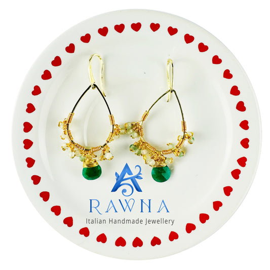 Orecchini Artigianali in Onice Verde e Prehnite -Gioielli Handmade RAWNA