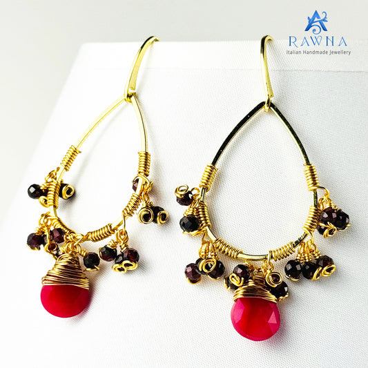 Orecchini Artigianali in Granato e Filo Dorato – Gioielli Handmade RAWNA