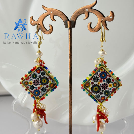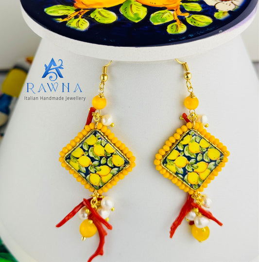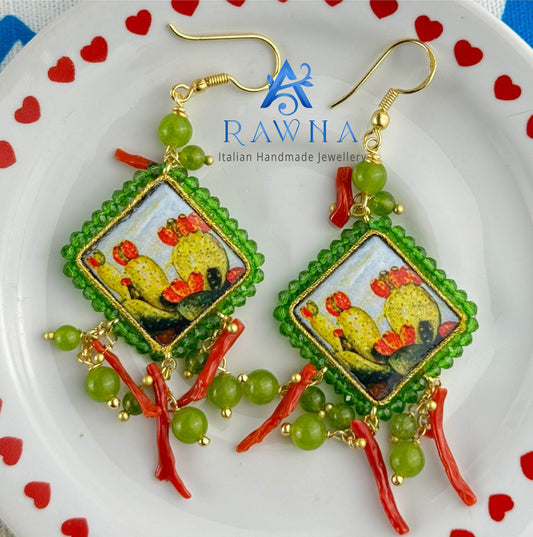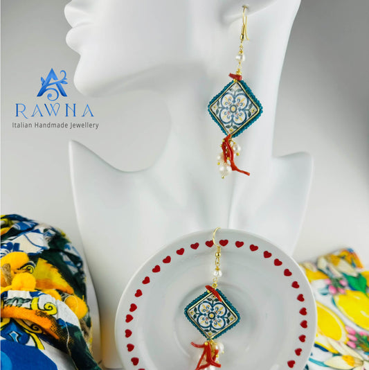 a Orecchini in pietra lavica di Etna Maiolica siciliana