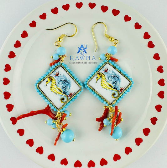 a Orecchini a grappolo di pasta di turchese e di corallo